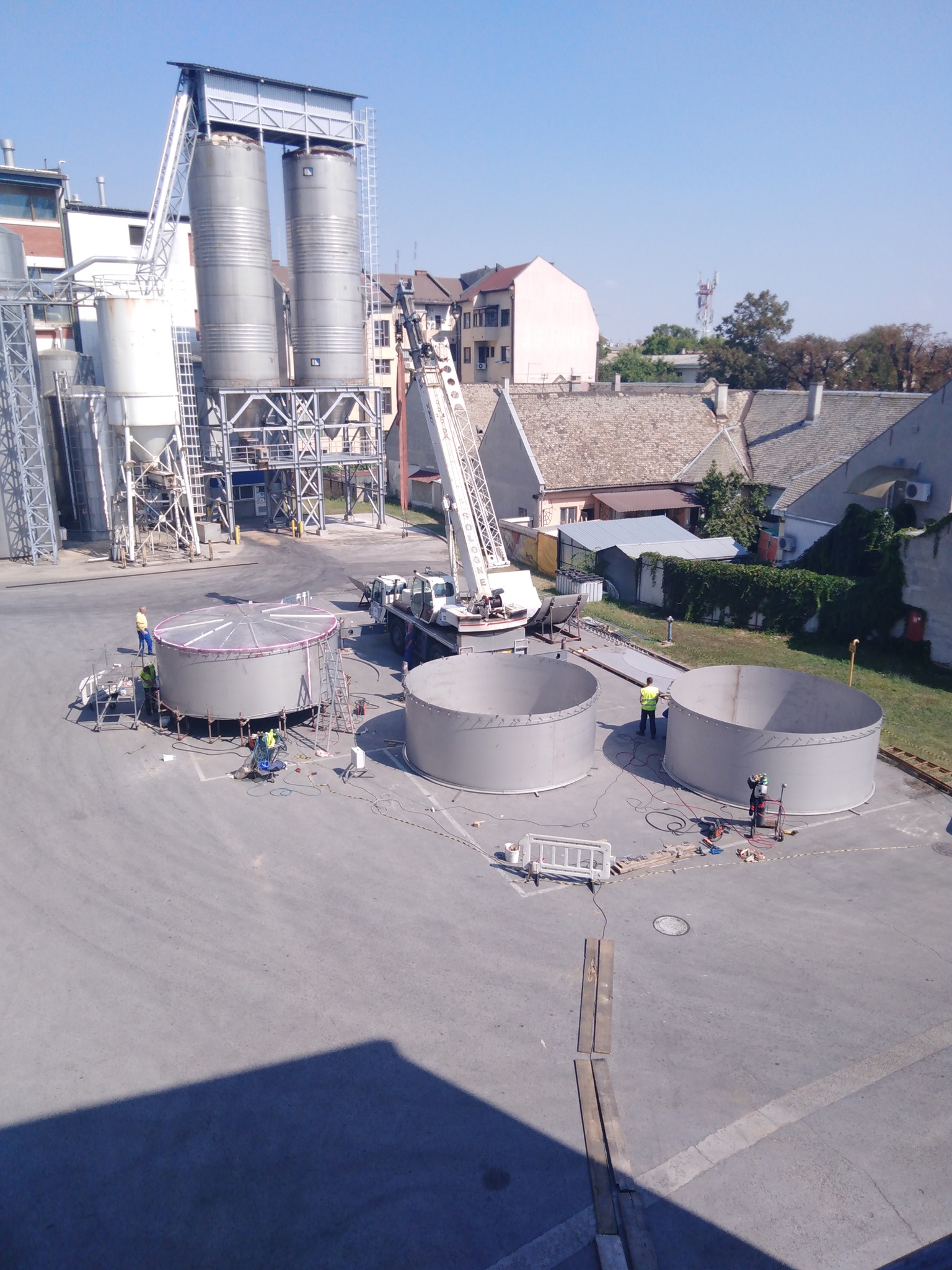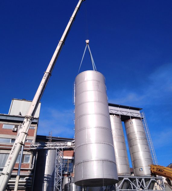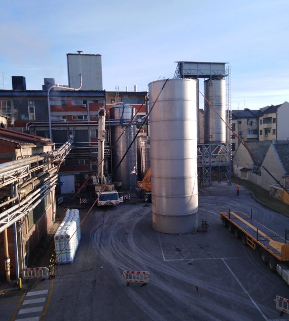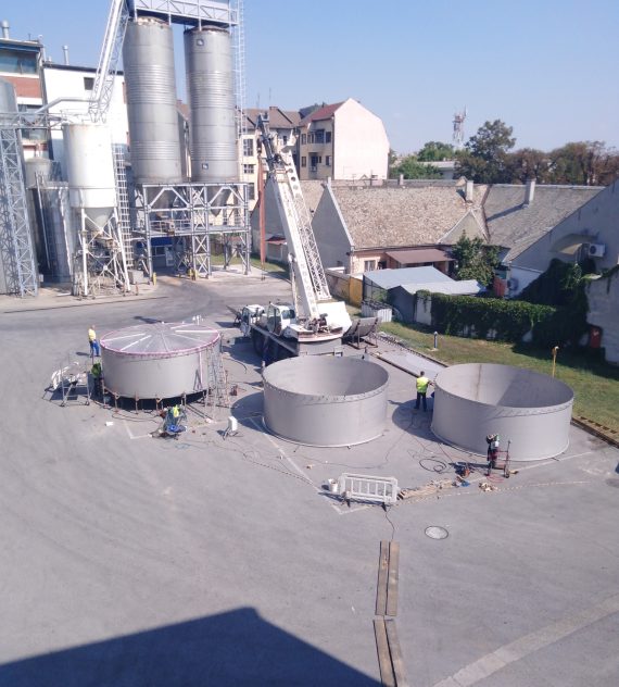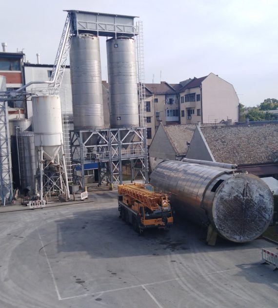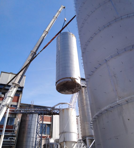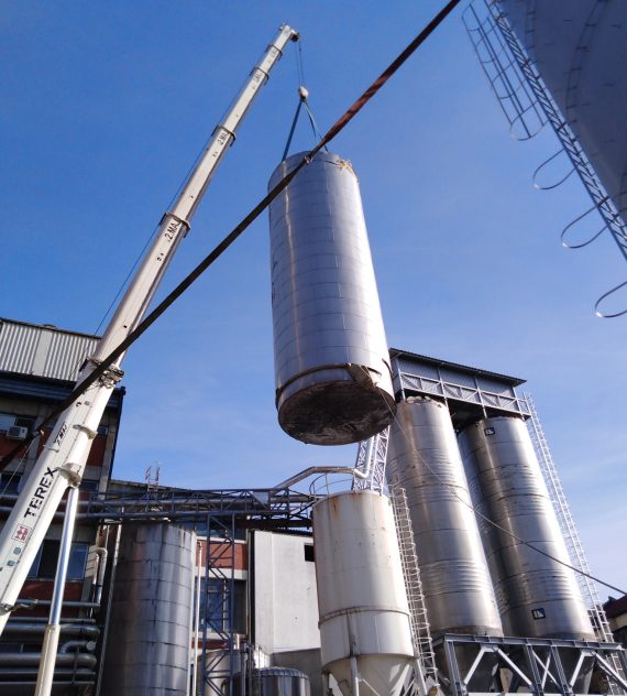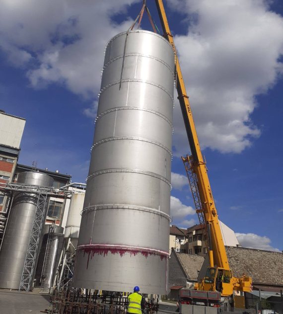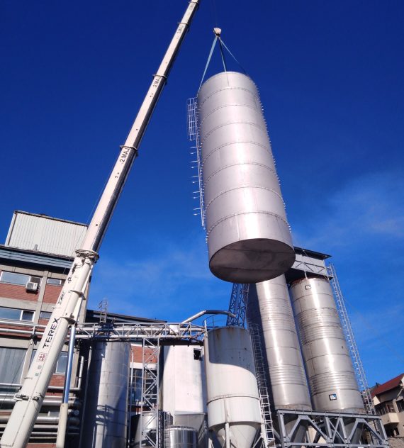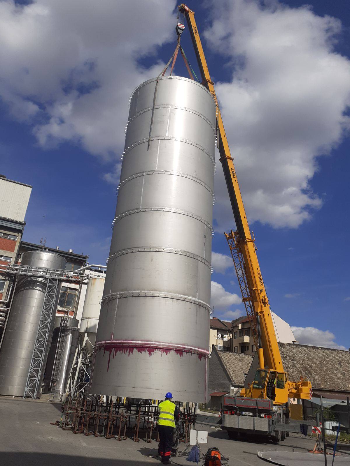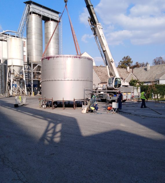Izdelava rezervoarja tople vode na lokaciji premera Ø5100mm h=16000mm iz nerjavečega jekla 316Ti indemontaža starega rezervoarja.