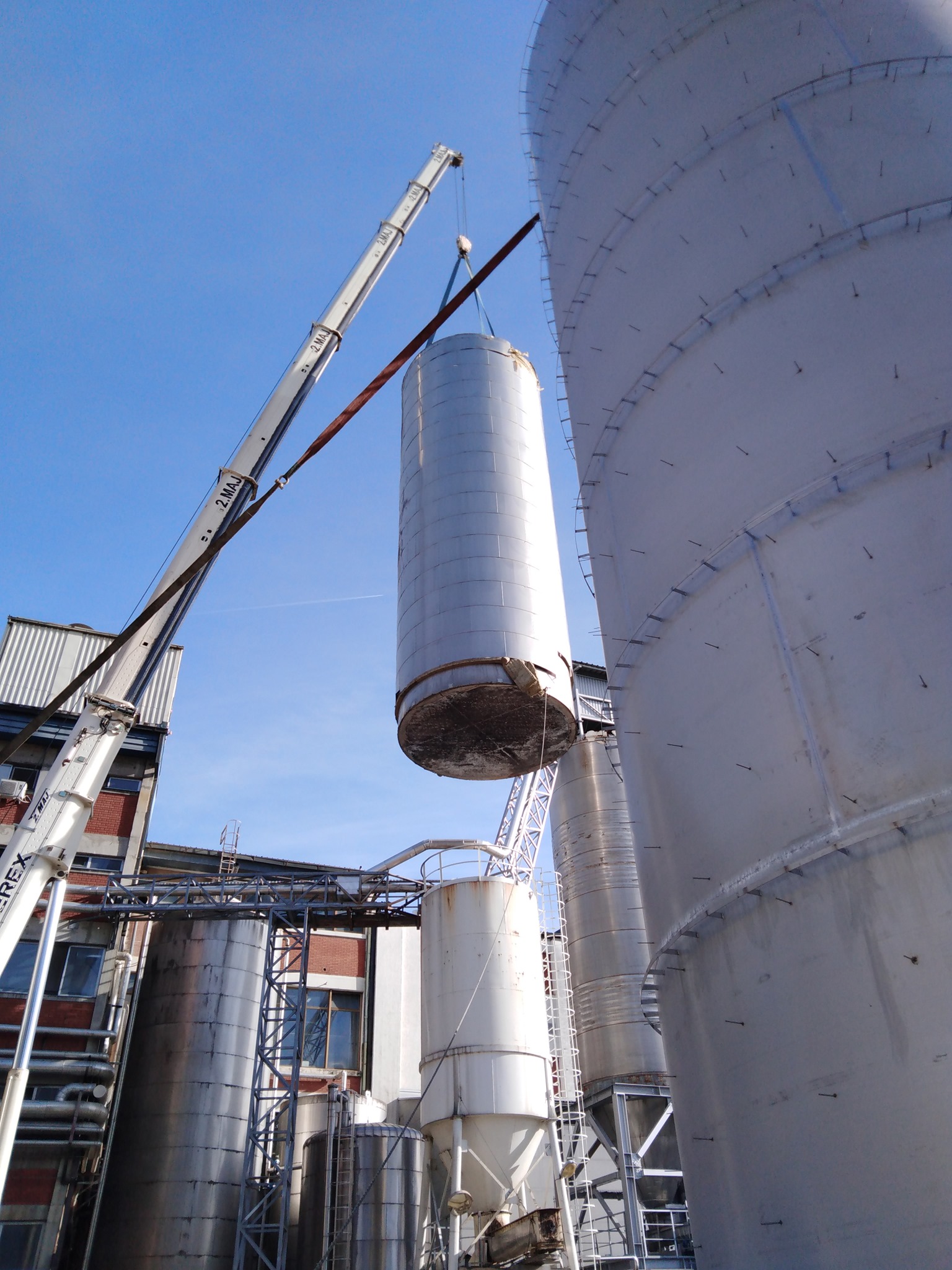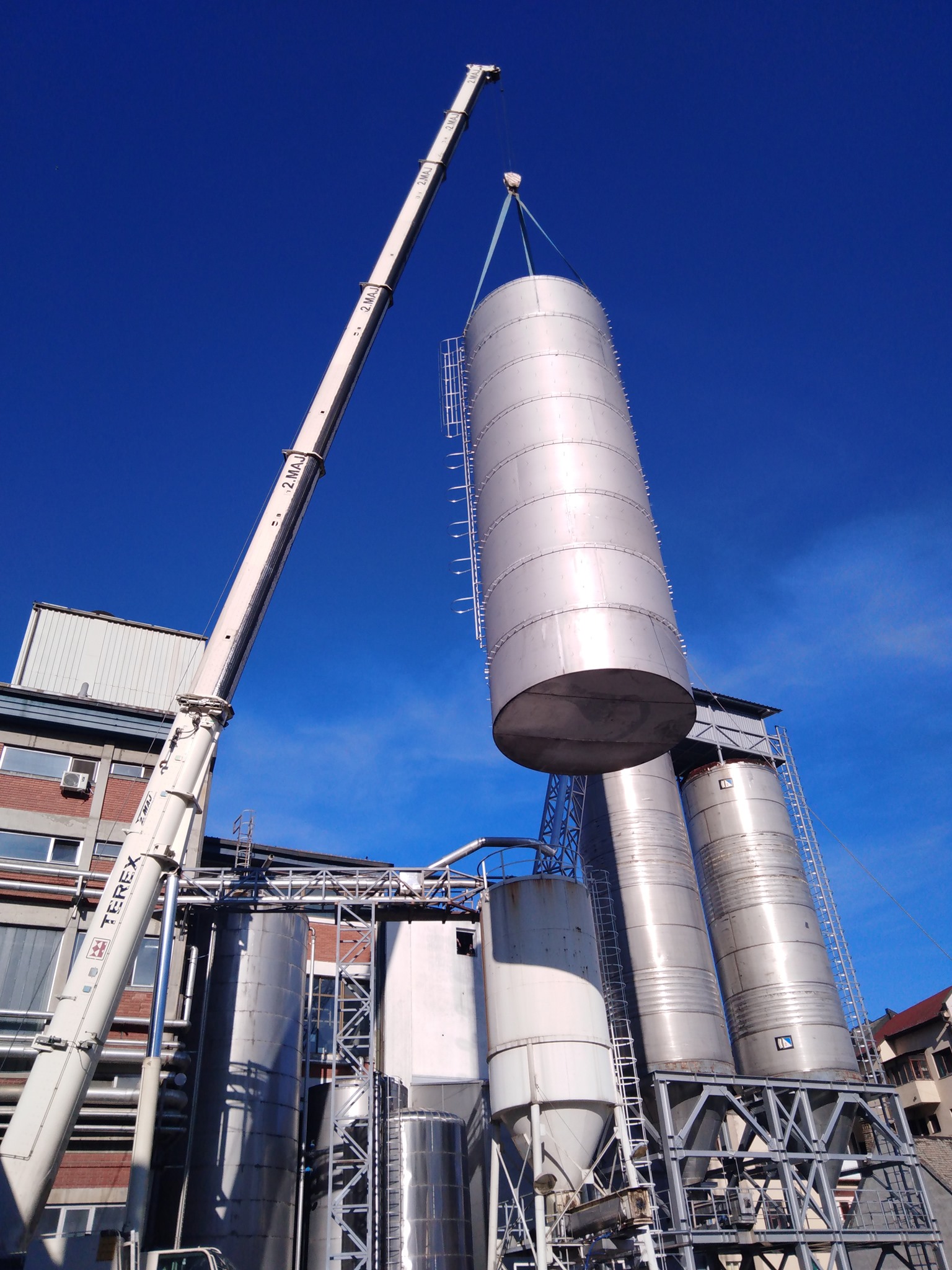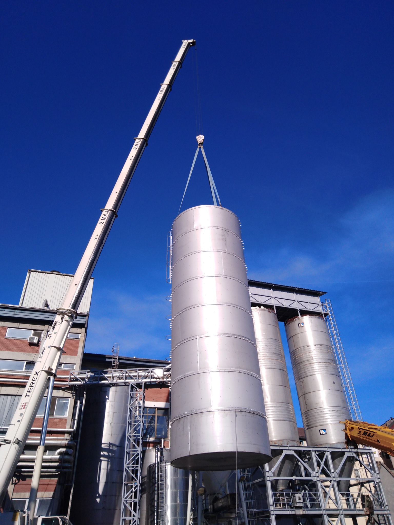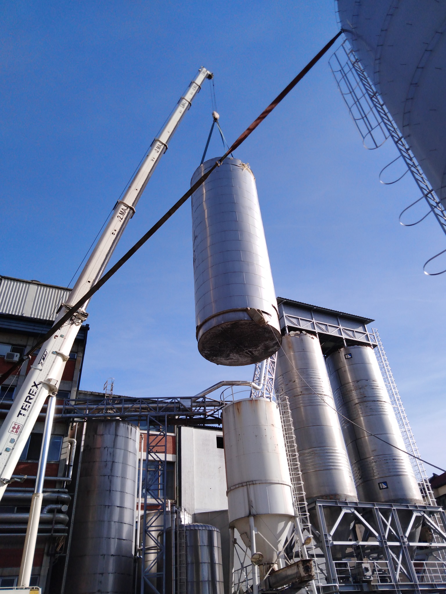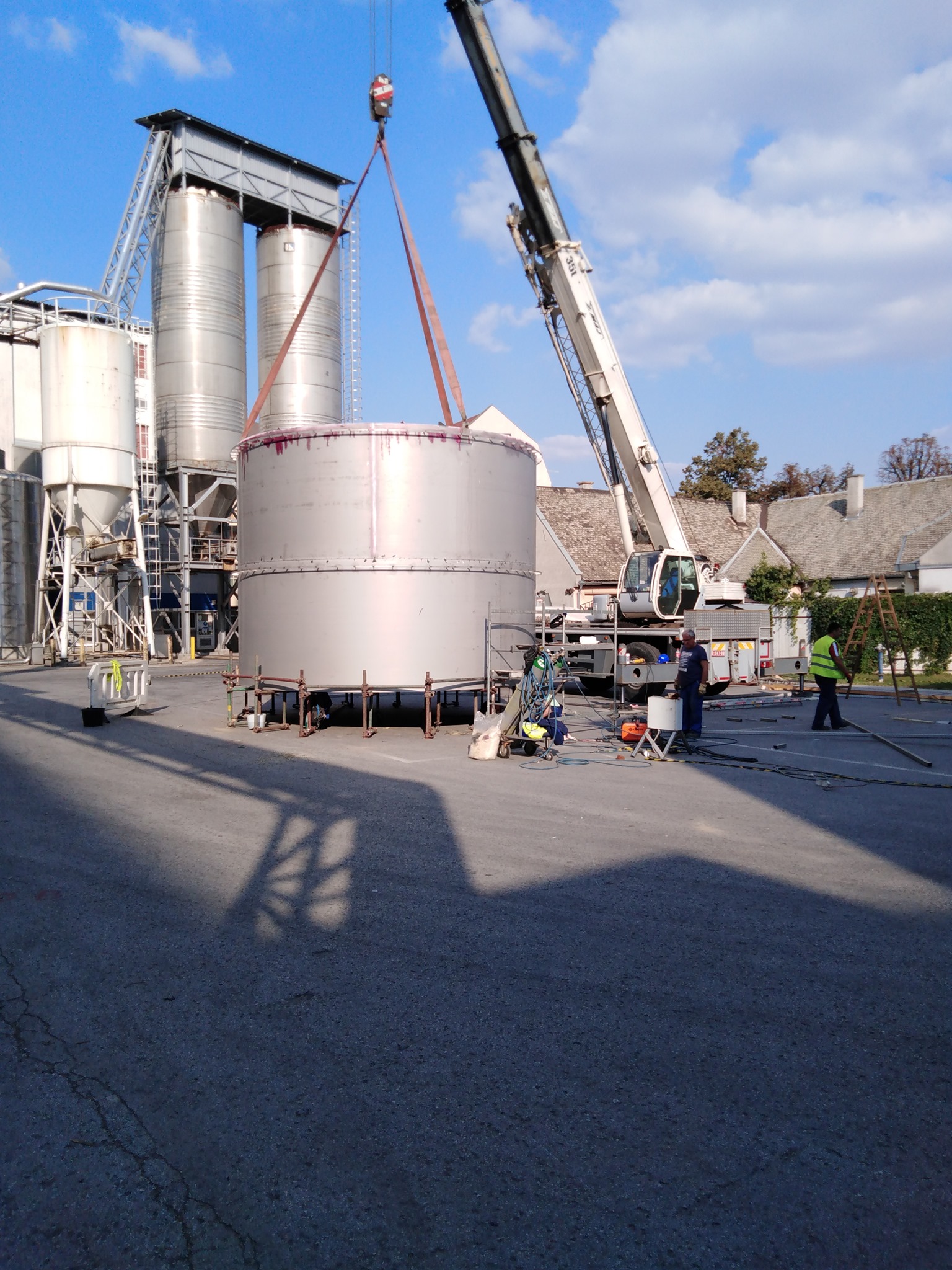 Izdelava rezervoarja tople vode na lokaciji premera Ø5100mm h=16000mm iz nerjavečega jekla 316Ti indemontaža starega rezervoarja.